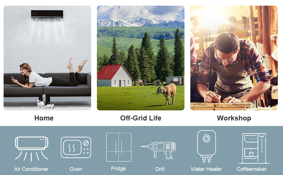 110V/120Vac Output Pure Sine Wave Power. Much better than Modified Sine Wave Inverter, protect appliance life with no electromagnetic pollution.