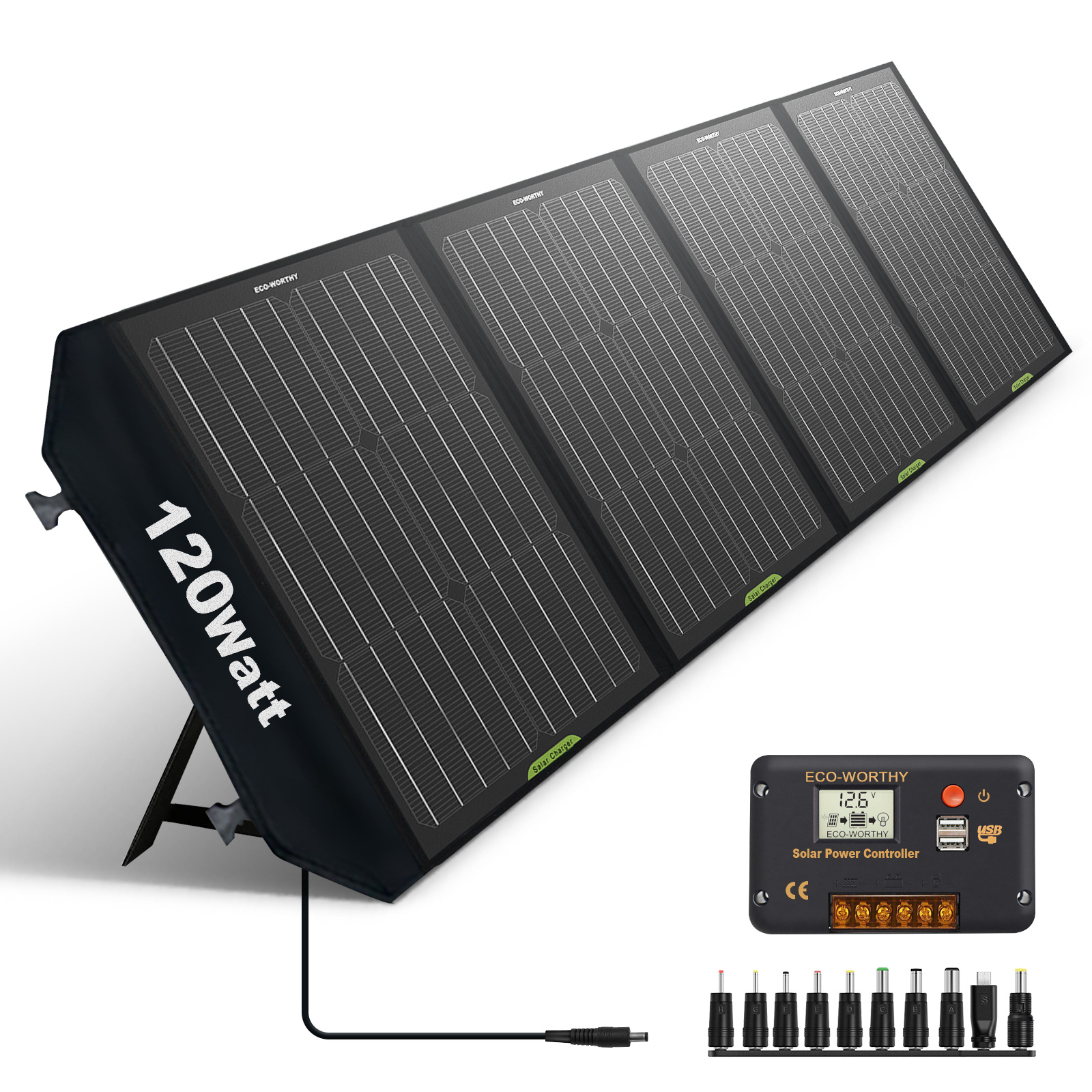 ECO-WORTHY 12V Foldable Solar Panel Suitcase is ideal for outdoor activities such as camping, climbing, hiking, picnic. Less installation space, more power for you. The foldable solar panel can even be placed under the car seat like a briefcase. It is the best solution for permanent installation of ordinary solar panels, leaving more space for your RV to store tents, kayaks and various camping equipment.